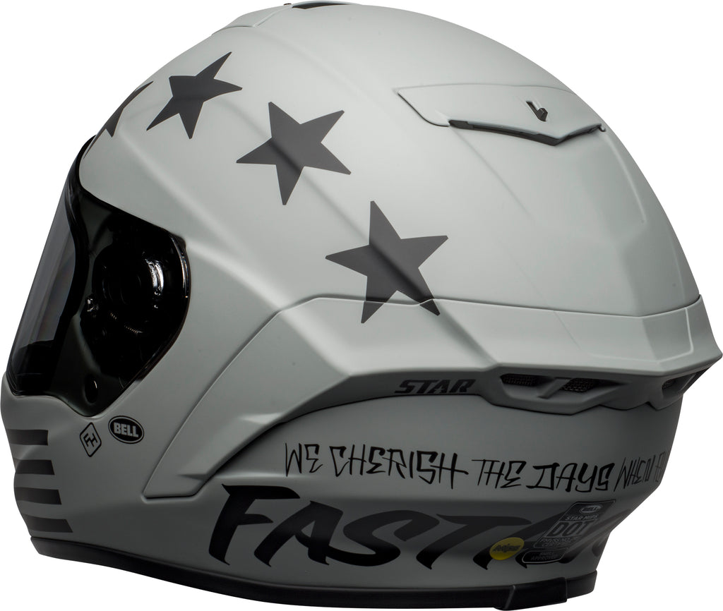 Introduced back in 1967, the first full-face helmet on the market, the Bell Star has long represented THE standard in head protection, and it has inspired an industry to pursue the science of head protection. The Star is the continuing evolution of that original ethos, and more. Drawing our inspiration from the essential needs of the modern racer, and loaded with quality features Ð TriMatrix composite shell, MIPS energy management, X-Static liner and Panovision Class 1 optics - it's a complete rethinking of what a race helmet should be. Includes Bell ProTintª Photochromic Shield. In the U.S., the Star DLX MIPS comes with a single Panovision ProTintª Photochromic shield. For the rest of the world, the Star DLX MIPS comes with a Panovision Pinlock Clear shield installed and an additional Panovision Dark Smoke Pinlock with Tear-Off Posts shield in the box. Availability, certification, color, and pricing may vary per region. If outside of the USA, please check with your authorized local dealer for more information.